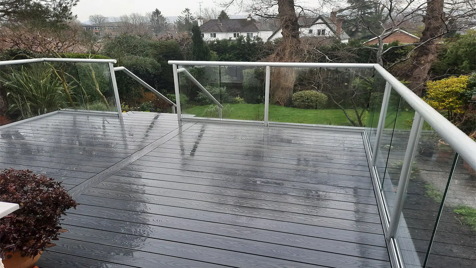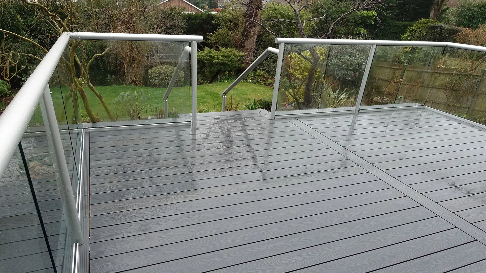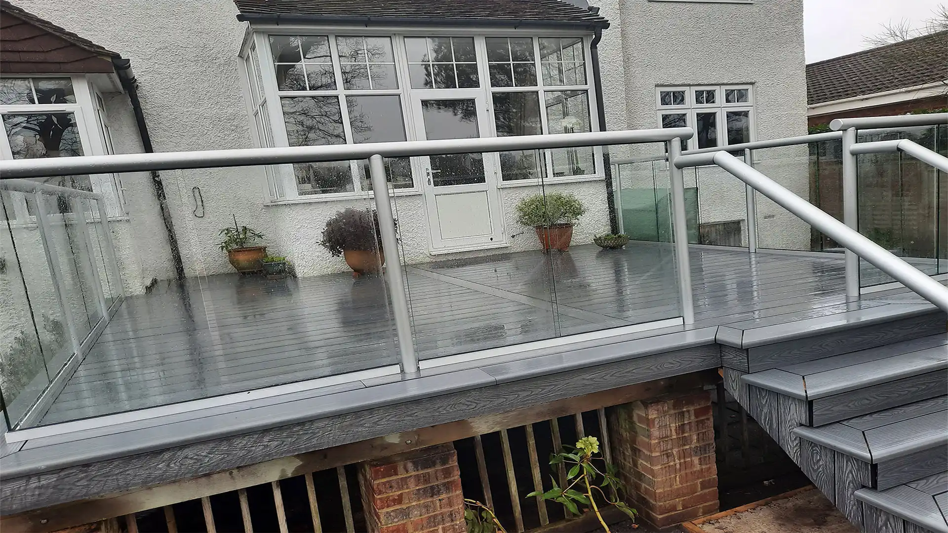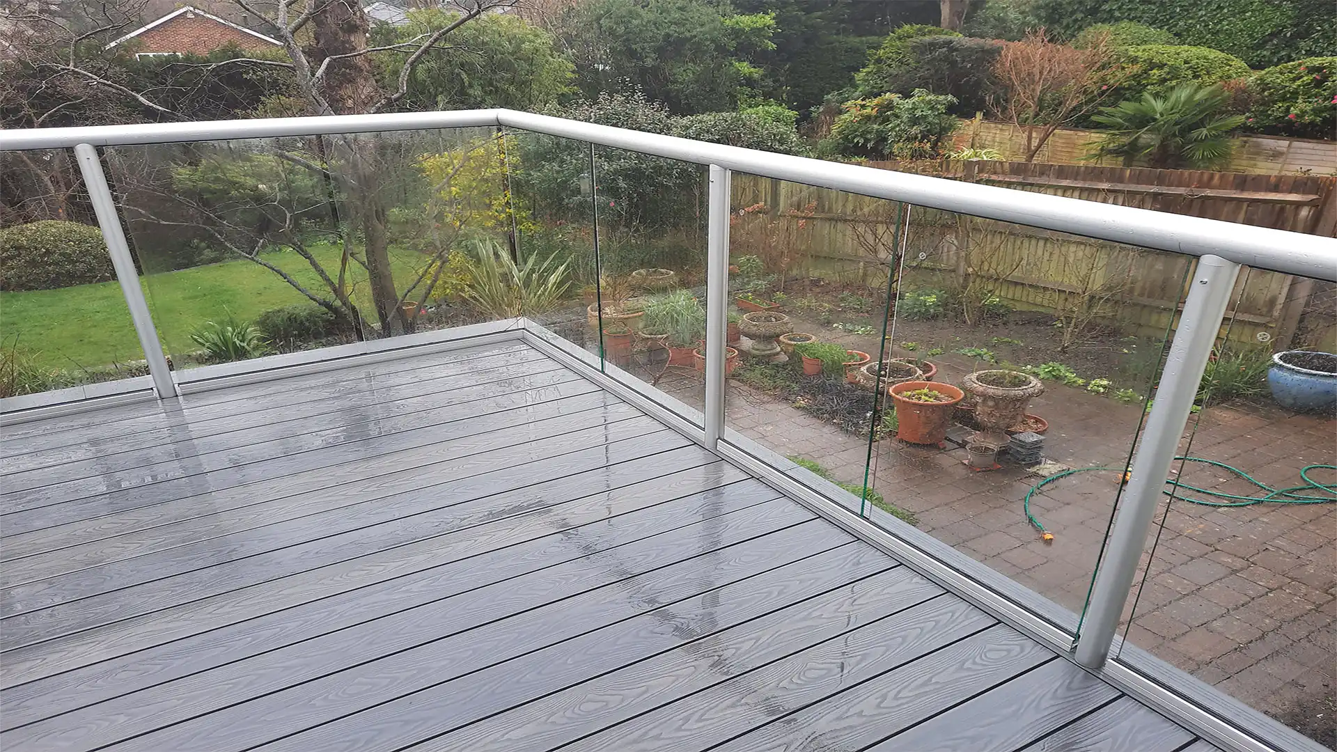 We started by taking out the old decking and hedge leaving the main framework that was in good order. With some finishing work to the framing, it was time to get the steel posts that support the balustrade framing installed on the frame underneath the decking boards. We had to install these posts within a 3-5mm accuracy otherwise the balustrade framing wouldn’t fit.