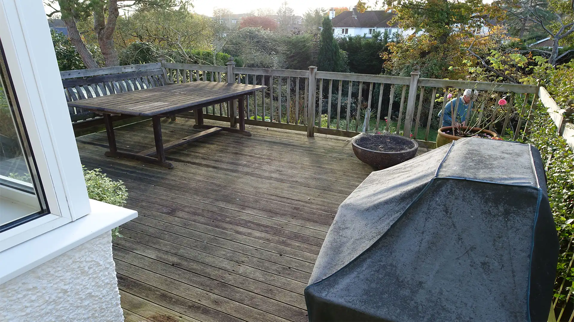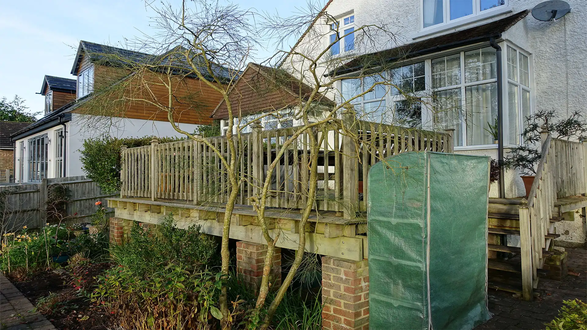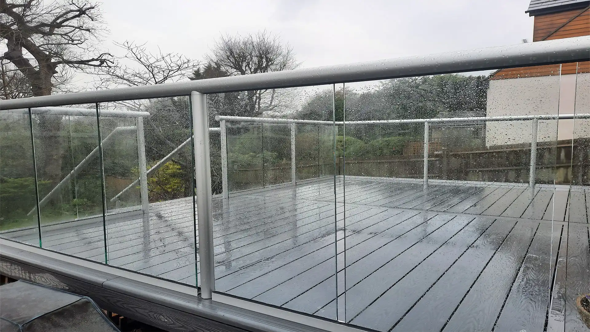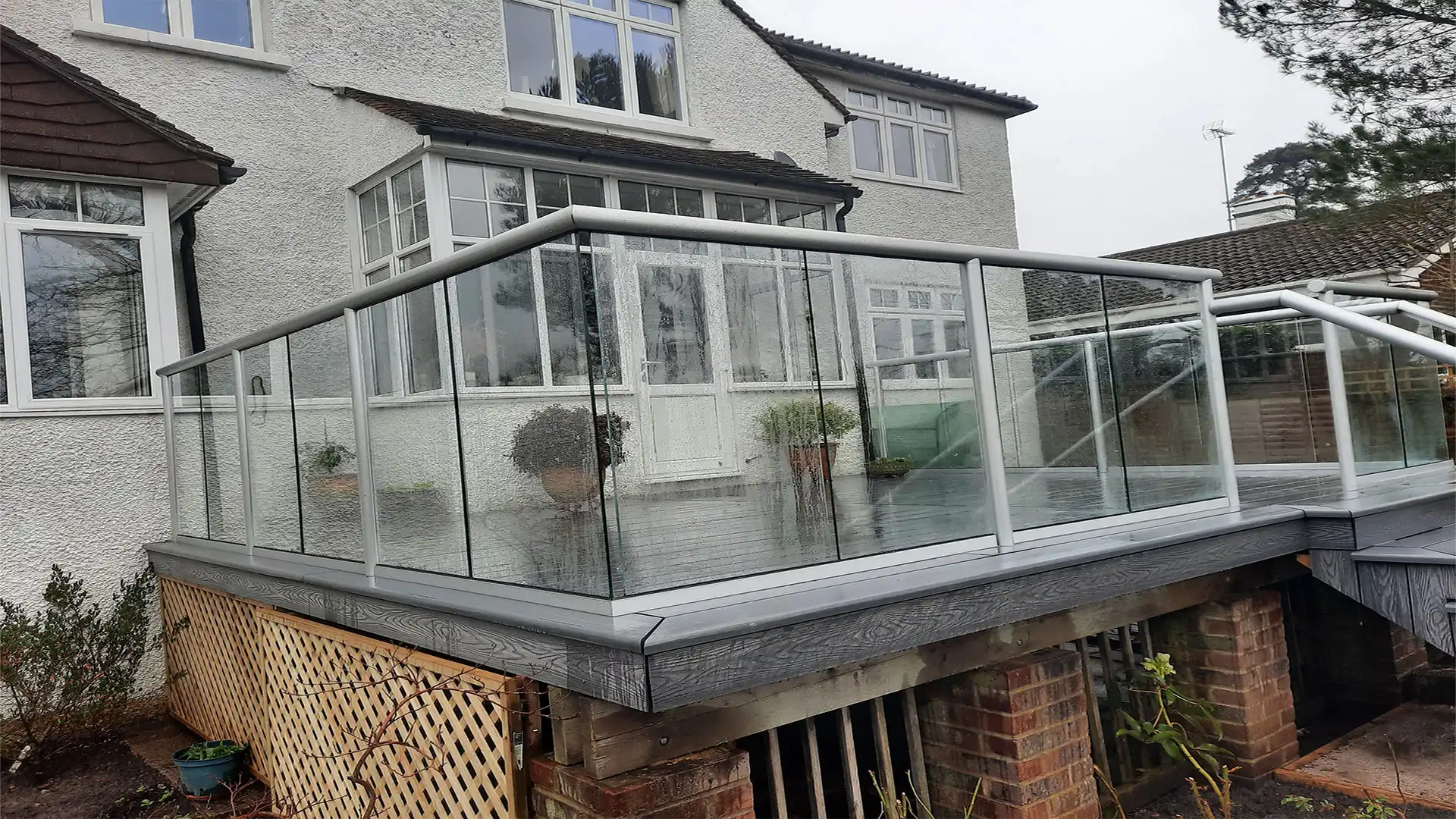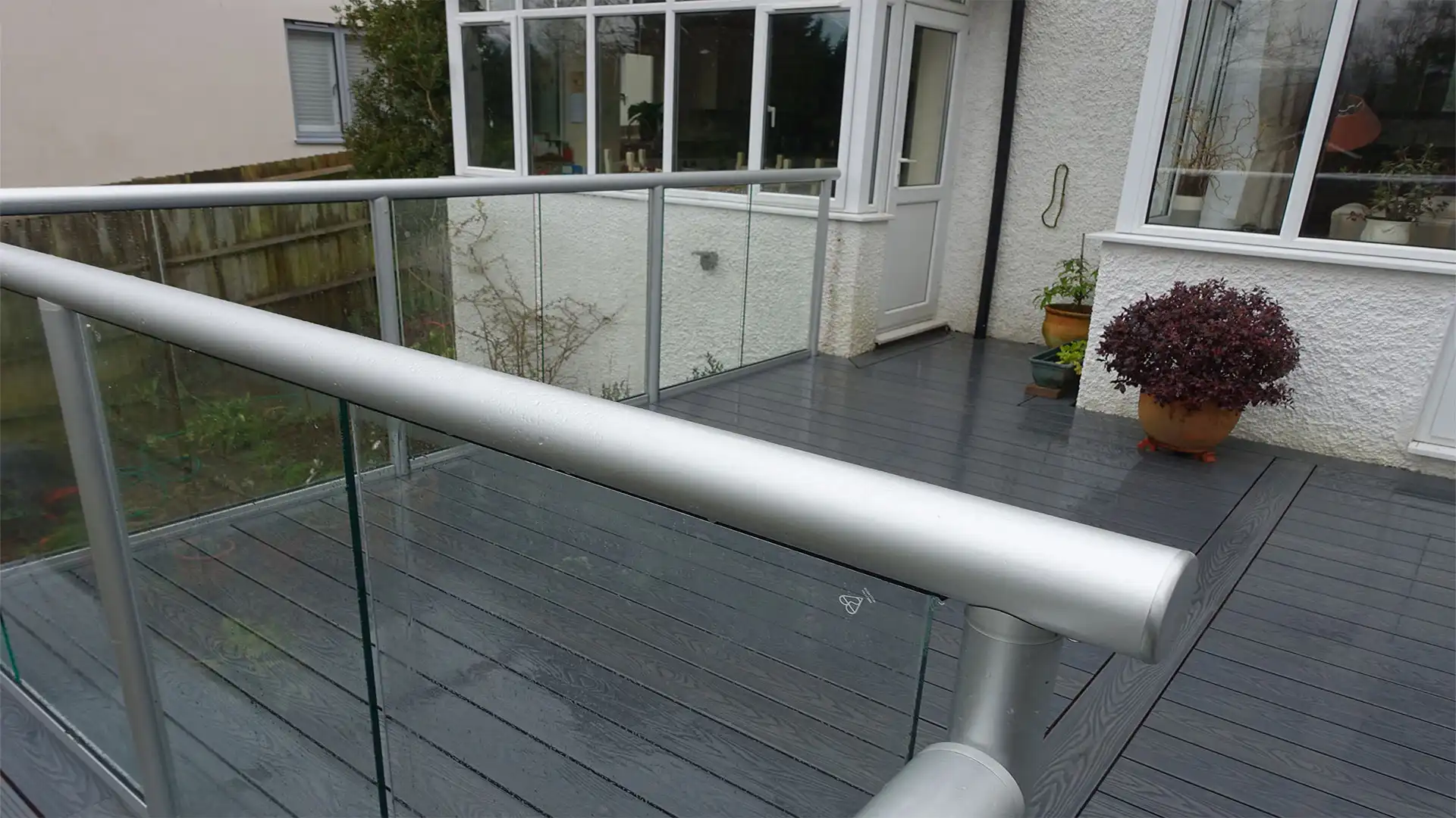 We started by taking out the old decking and hedge leaving the main framework that was in good order. With some finishing work to the framing, it was time to get the steel posts that support the balustrade framing installed on the frame underneath the decking boards. We had to install these posts within a 3-5mm accuracy otherwise the balustrade framing wouldn’t fit.