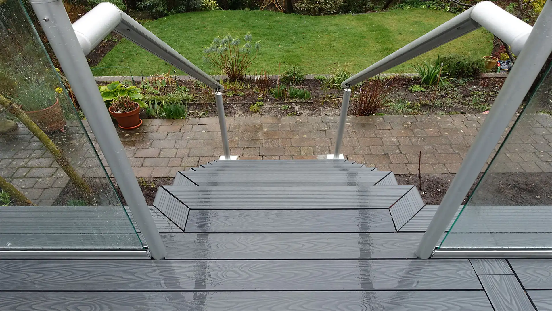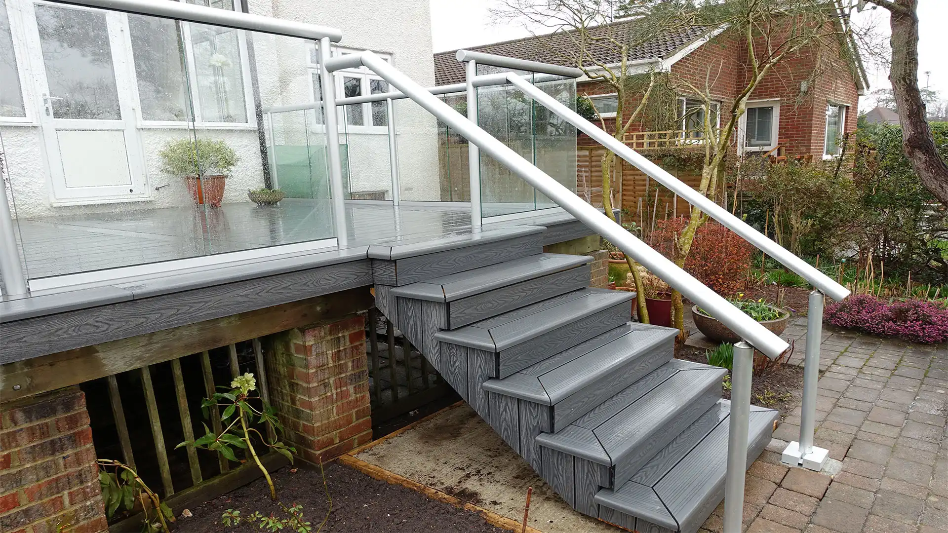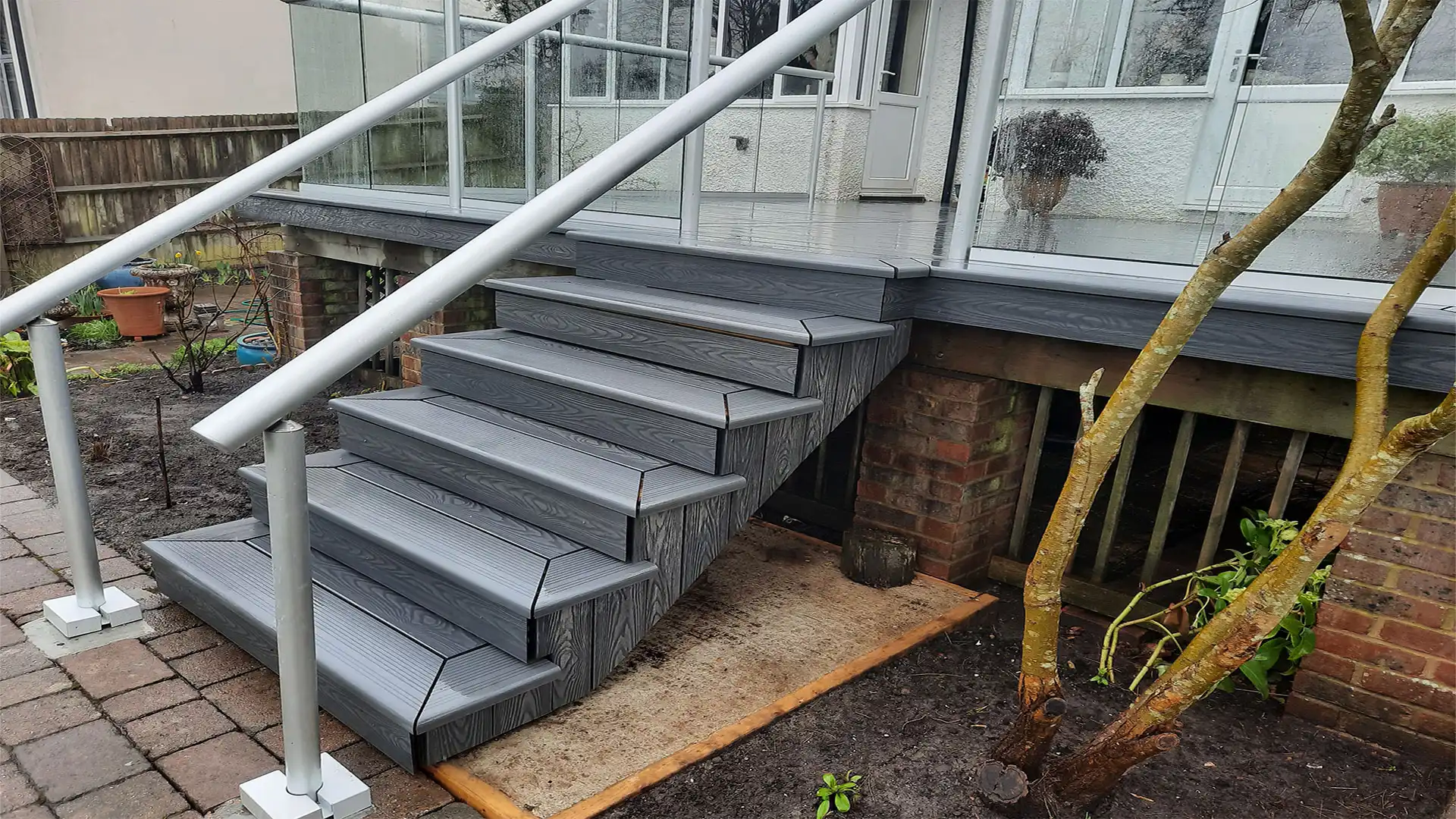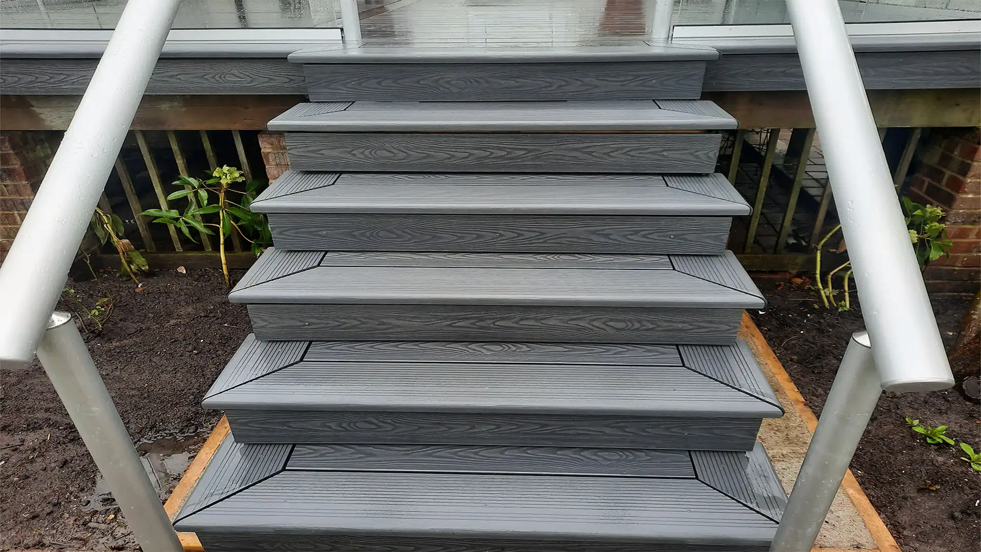 We built a picture-framing edge board around the whole deck and steps and it is this type of attention to detail that gives the decking its class.