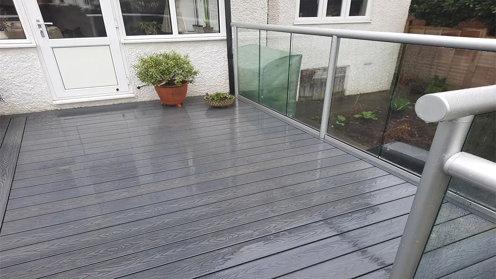 The beautiful grain effect on the composite boards looks great and will not require any maintenance and will look as good in 10 years as they do now.